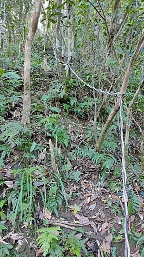 虎寮潭叉路,左為古道支線往虎寮潭,右為湖桶古道往胡桶遺址,取左。這條古道支線又稱虎寮潭步道,一開始循支稜緩降,路況佳。H708m |