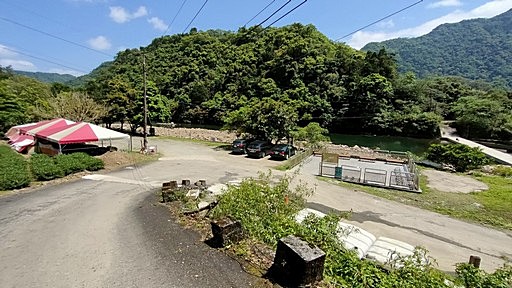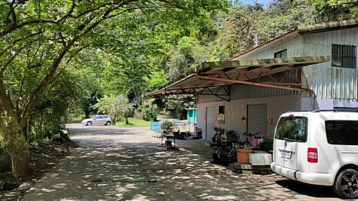虎寮潭16號石厝民宅,附近有大樹與步道洗手間,雖然腹地不大。產道往坪雙路2700公尺。H335m |