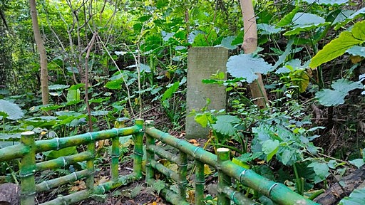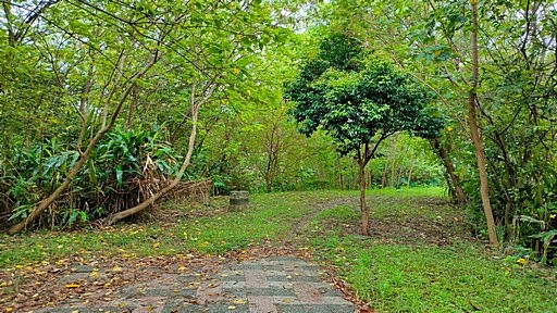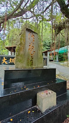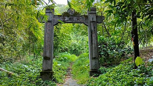 萃靈塔,原建於昭和四年(1929年),大溪八景之靈塔斜陽,民國六十七年改建。萃靈塔正前方靠山谷處有敬字亭解說牌,敬字亭就在山坡下。目前從女廁旁大樹,循不明顯的姑婆芋小徑直下約二十公尺即可到達。H168m |