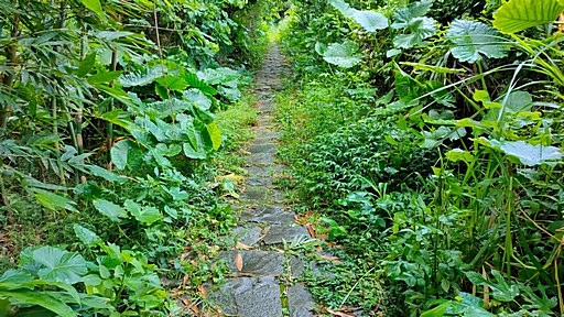 齋明寺古道入口,位於台4,設有觀光指標。古道仍保留較古老的石塊。H98m |