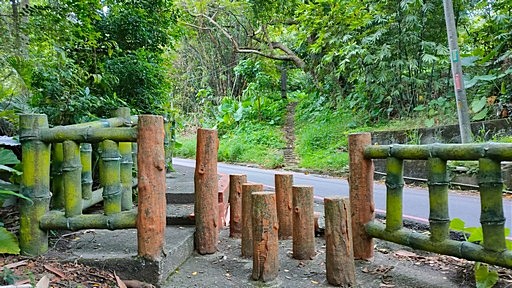 公墓車道路底,右下水泥階梯為蟠龍崎古道。H140m |