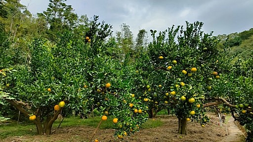 水泥產道叉路,左下水泥產道往水坑廣山,取左。水坑高幹48支34電線桿。水泥產道漸轉上坡,沿途多柑園。H169m |