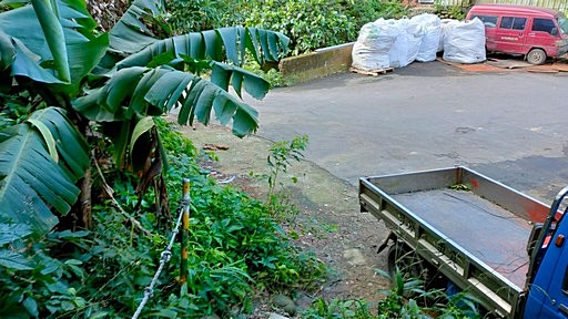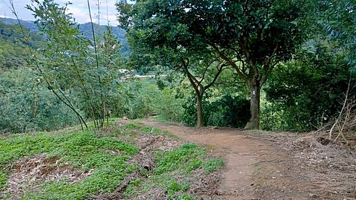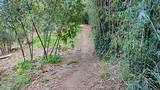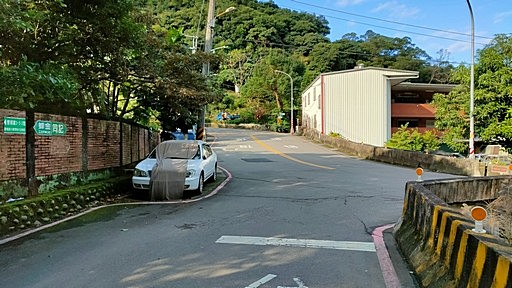 六九步道入口,位於巷道內一處無名水泥橋頭。循巷道而出,經清潔隊停車場入口。H42m |
