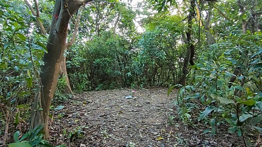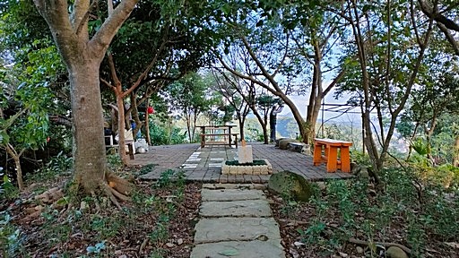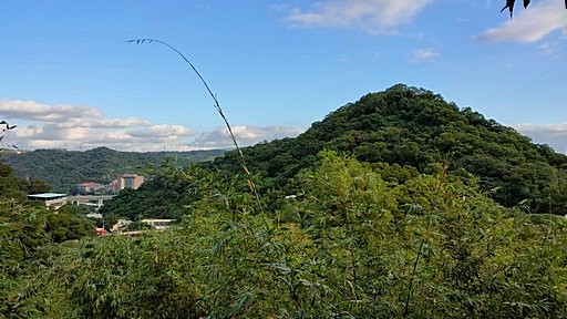 瓊仔湖福德宮叉路,右側封閉小產道往瓊仔湖福德宮,左上仍是義學坑步道往山頂公園,取左。稍後有個觀景台,可眺望新莊副都心。H146m |
