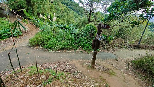 尖凍山叉路,左路標示往尖凍山,不知在何處銜接主步道?取右往黎明路。山路經過清潔隊停車場後方。H61m |