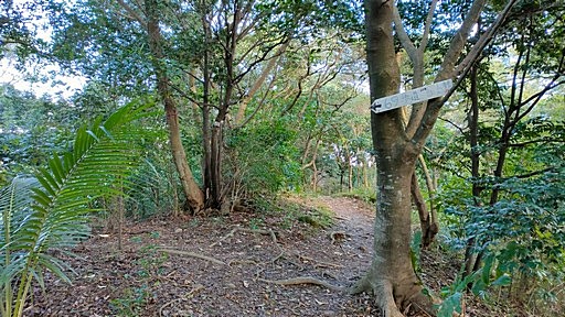 瓊仔湖山北峰,95m,民航局‧限‧W16基石。基石位於山路平緩路段竹園邊。續前行。步道末段因稜線被公園路破壞而改為往右下切,已建有木棧道與明確指標。H88m |