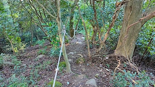 回到六九步道叉路,循陡峭土路步道一路拉繩而下,轉上支稜後路趨緩。H167m |