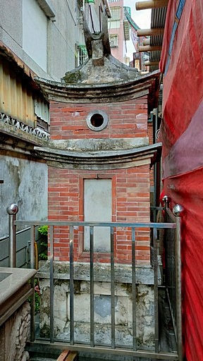 新莊敬字亭,位於文昌祠前,剛好被臨時搭建的棚架擋住,無法拍攝正面。原路回捷運新莊站,續搭786公車。H9m |