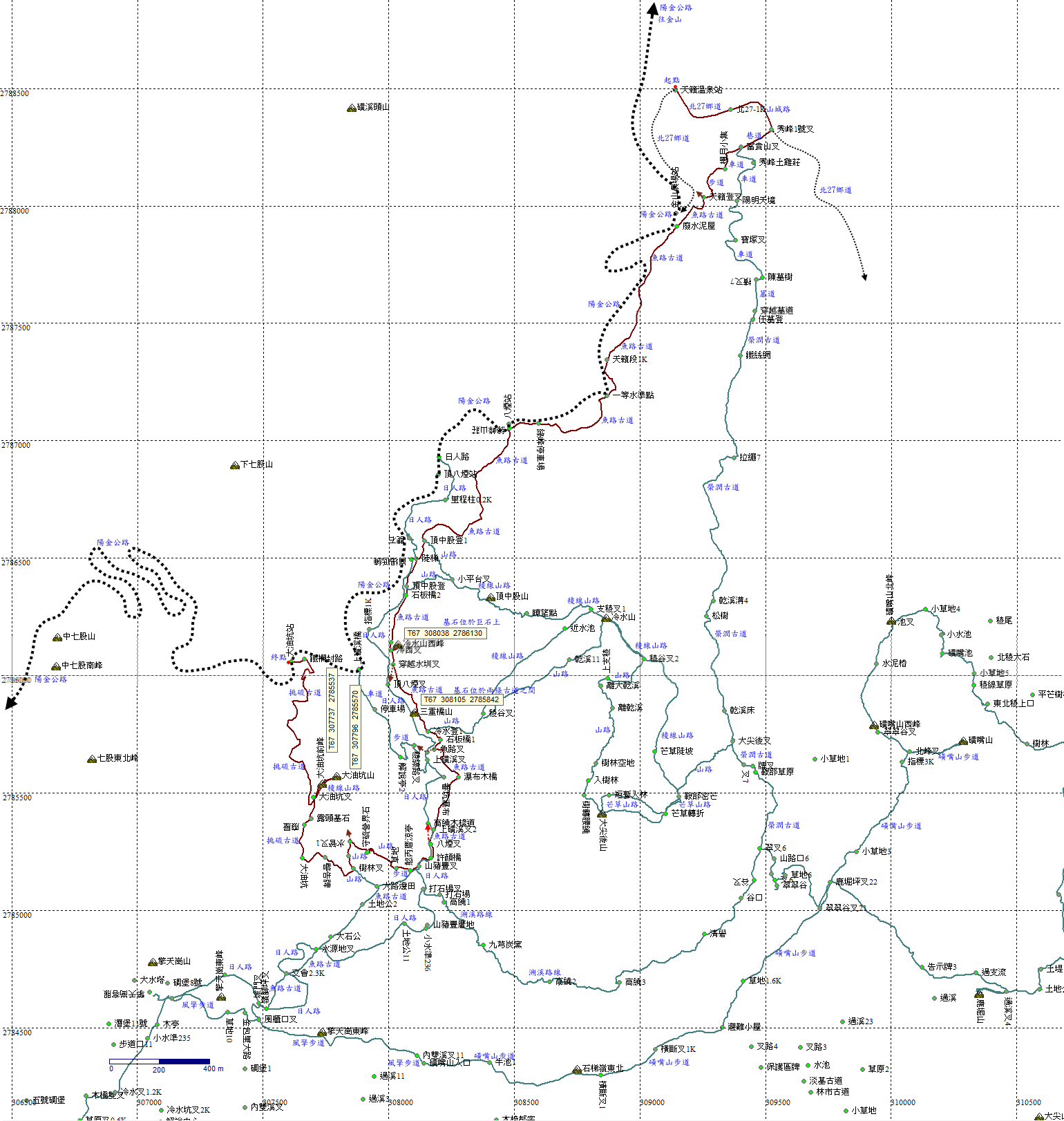 獨步山林間1751:冷水山西峰 魚路古道,冷水山西峰,三重橋山,大油坑山前峰、大油坑山,挑硫古道 [2023/3/7] | |||||||||||||||||||||||||||||||||||||||||||||||||||||||||||||||||||||