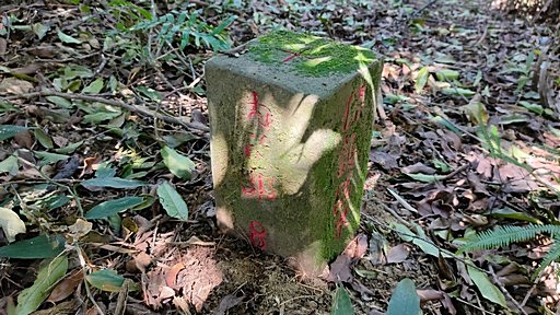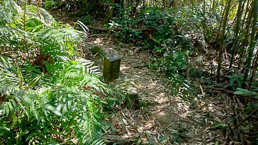 中生橋頭崙,50m,礦務課第拾號。基石位於中生路福德宮後小丘。這裡其實比新的中山橋還低。H56m |