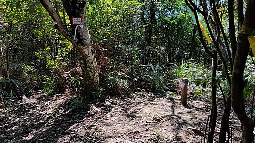 大崎尖,551m,無基石。樹林間無展望。已無山頂標示牌,續行往四十分雞心尖。H552m |
