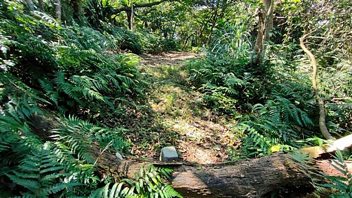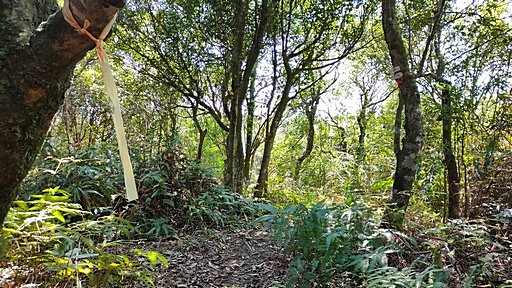墓區車道彎道處,續行小徑往大崎尖、四十分雞心尖。H480m |