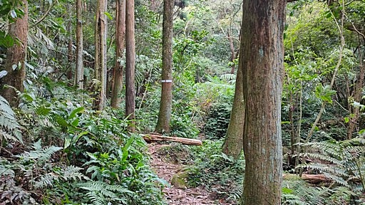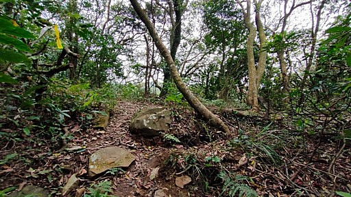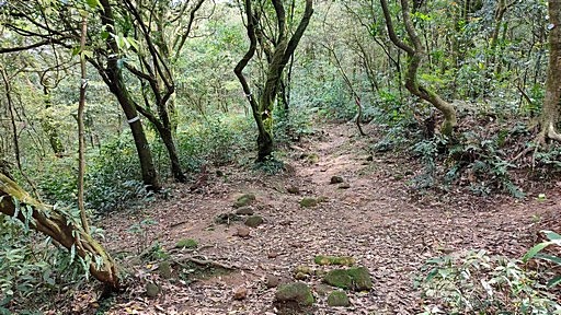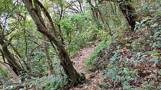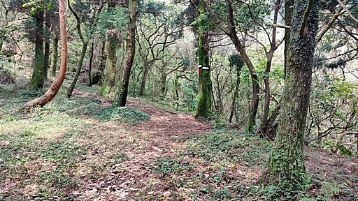 瑪礁古道叉路,直行為內寮古道往擎天崗,右往瑪礁古道、亦可往擎天崗,取右。稍後過乾溪後開始陡上往稜線。H519m |