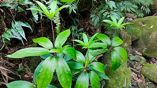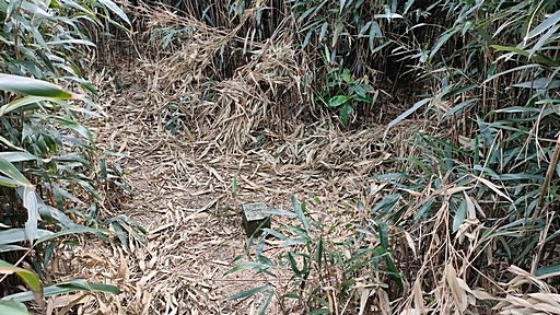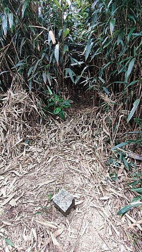 續行,未列名11基石旁為通往西北峰的山路,較冷門,進入箭竹林。一開始箭竹林中路徑紛雜,缺乏路條導引,只能抓方向前進。稍後前方出現少量樹林,急著過去反而不好走。 |