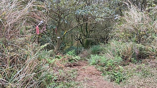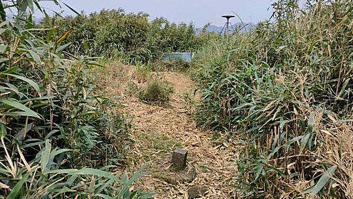 土堤叉路,兩側都有山路,無標示,左路可避開稜線芒草區,但右路設有防迷地線,且有展望,取右。H754m |