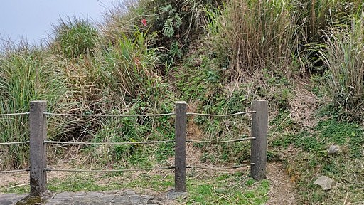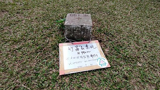 擎天崗山南峰(瑪礁山北峰、竹篙山東峰),780m,北市地測精幹點‧市199。基石位於2號碉堡旁草地高點。碉堡另一側山路入樹林可下往內雙溪古道。H778m |
