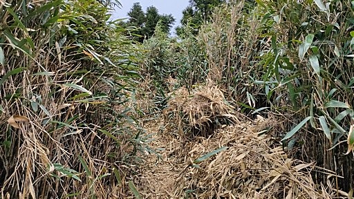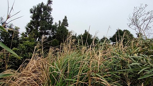 杉木林,旁邊是芒草區,先走一段好走的杉木林,再鑽入芒草區,一開始不太好走,但漸漸有路跡,抓方向循芒草稜線緩下。H884m |