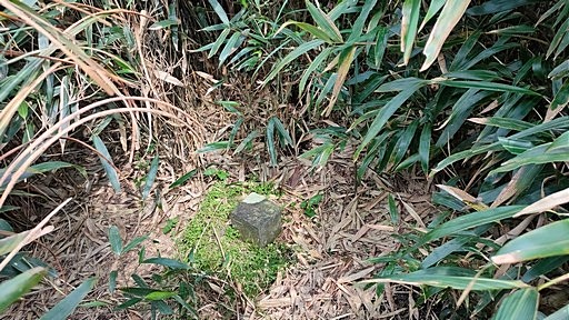 北市地測精幹點‧市153,基石位於芒草山路終止後,路左箭竹林。略往下坡走幾公尺,展望更佳,可俯瞰馬槽橋。H889m |