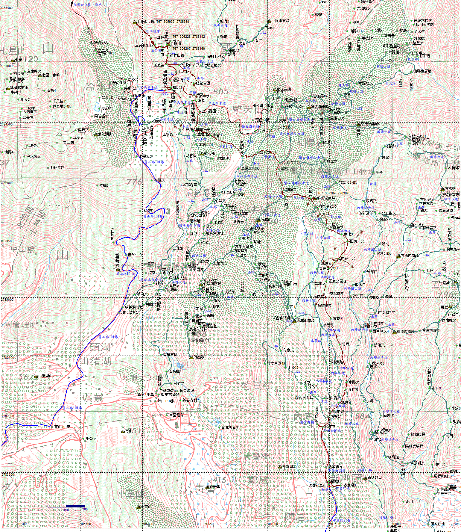回到天寶聖道宮叉路,下往天寶聖道宮,山路路況頗佳。H855m |
