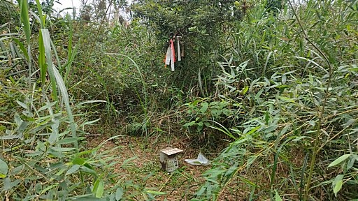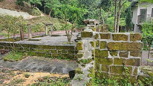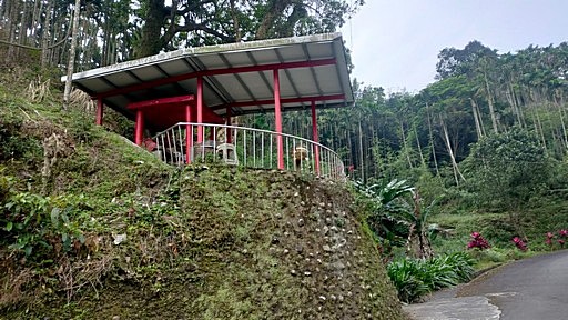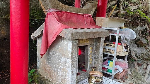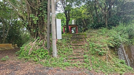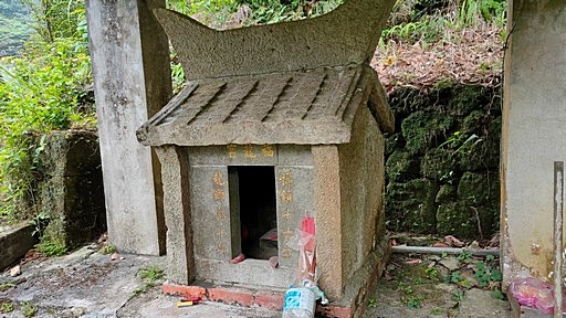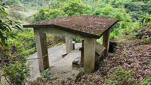 福龍宮,古老的石砌小土地公廟。續行有水泥步道下往下坑路,剛才的水平農路亦通到此處。登牡丹驛山走福龍宮步道,再循稜而上比較直截了當。H95m |