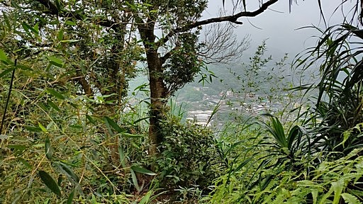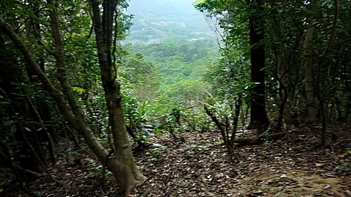 稜線轉折處,跟著不明顯路條往左繞過稜線,再略往上,這段路很不清楚,稍後出現老舊繩索,陡下往支稜。H284m |