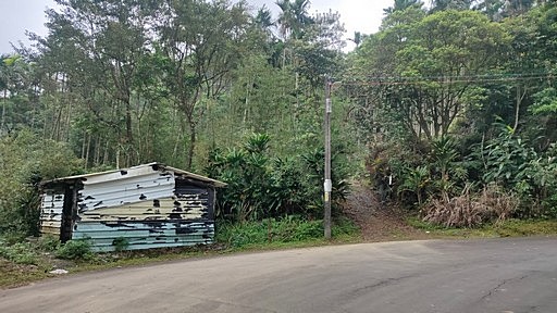 廢棄民宅大門,取右側農路緩上。隨即再遇小路上稜。H94m |