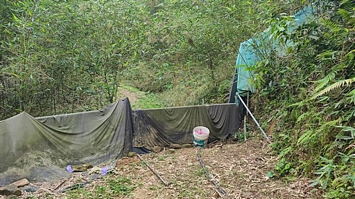 牡丹驛山,168m,無基石。山頂橫亙著山林投叢,往右走至最高點無展望,退回往左略低處才是最佳展望點。可俯瞰牡丹地區,這座山應該是開發來看火車的點。砍除斜坡上的竹枝後,視野開闊。稍後火車出現,心滿意足下山。H175m |