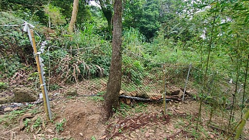農地外圍圍籬,頗高,但不難通過。續行的山路路跡略不清,不久遇叉路往右上稜。H209m |