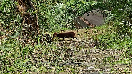 續行,循朝山古道下山,通往聖南寺的下寺。這條朝山古道多為石階路,經整理後路況佳,一路往下。途遇山羌一隻。 |