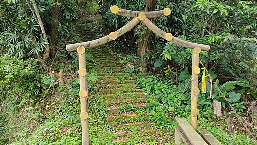 朝山古道出口,續前行小段至彎道處有第二段朝山古道,繼續往下。H125m |