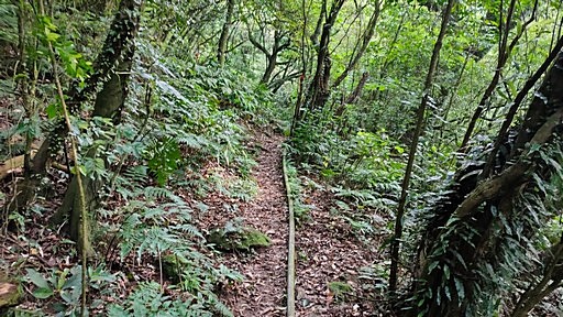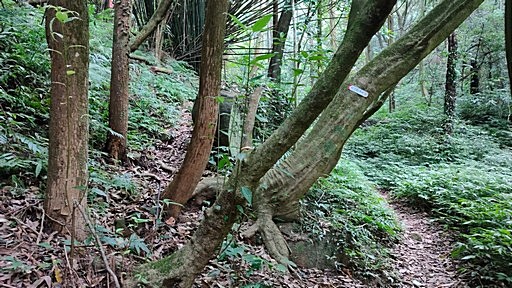 續行,取左,山路有整理,且有防迷地線,一路往竹篙山南峰。 |