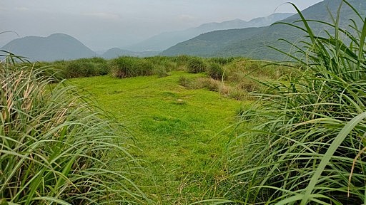 忘憂北草原,展望頗佳,可眺望七星山、七股山、紗帽山。右側有芒草山路下往絹絲瀑布,左側對準小草山有明顯山路往忘憂南草原,取左。H789m |