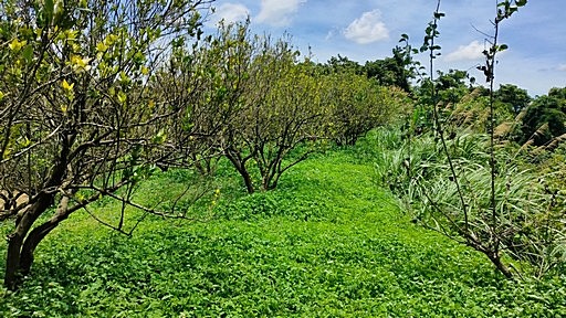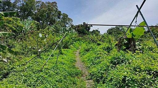 離開步道,稍後循稜而行,這段其實也是舊步道,行於果園邊。H600m |