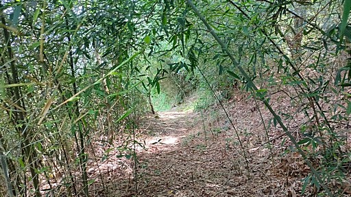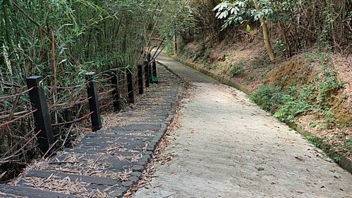 續行,循小中嵙步道下山,其實是一條小產道,一路往下。較陡處有鋪設步道階梯。 |