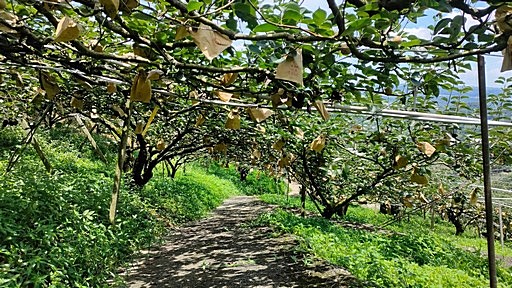 續行,水泥產道一路緩上,沿途多梨園。產道叉路皆取主線往上。 |
