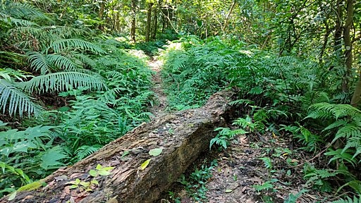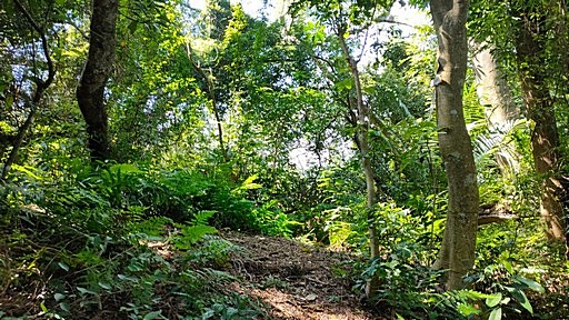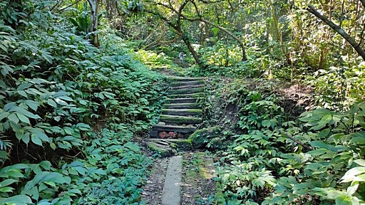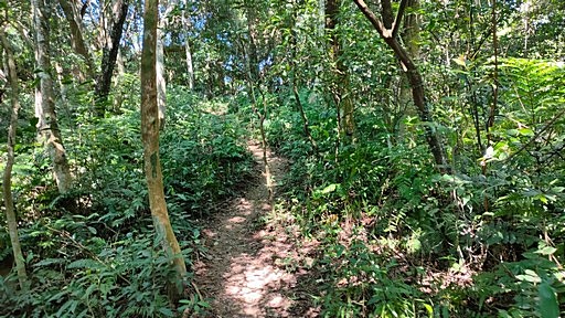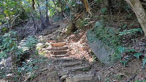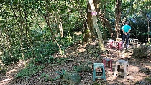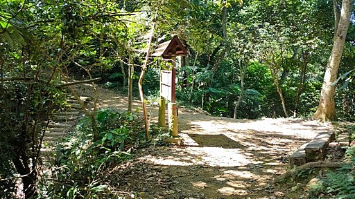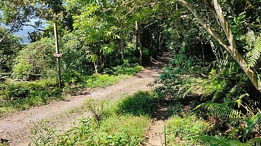 鞍部十字路口,休息區,左循稜往百吉林蔭步道,右循稜往頭寮山,偏右往下為湳仔溝古道,取右。稜線山路路況佳。H363m |