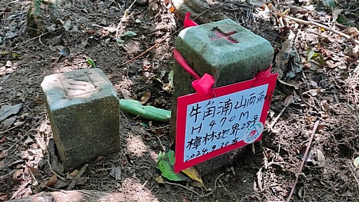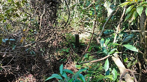 牛角湳山西南峰(內湳溝山南峰),470m,專賣局樟林地界第二八號、三井界石。稜線步道從旁經過,左上登頂再略往下的稜肩處,約十五公尺而已,山友新找到。樹林間無展望。H451m |