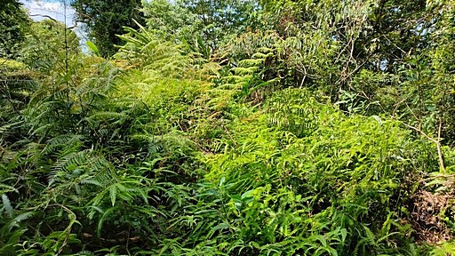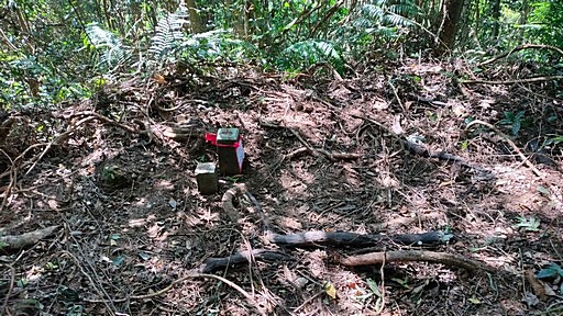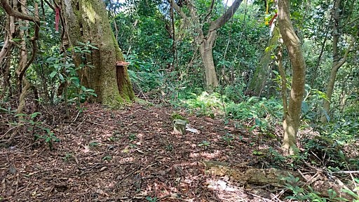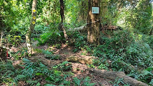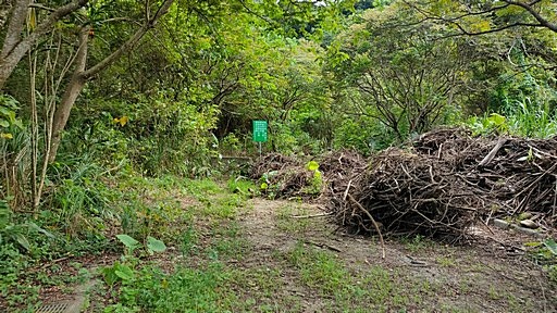 交通錐,竹高厝山基石點位落在產道圍繞之處,整裝後闖入芒草疏生的樹林,中途遇殘存小稜,右轉往下,朝點位靠近。H229m |