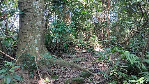 內湳溝山,480m,營林所水泥柱。稜線步道從旁經過,右上登頂約十公尺而已,但少人走。樹林間無展望。H474m |