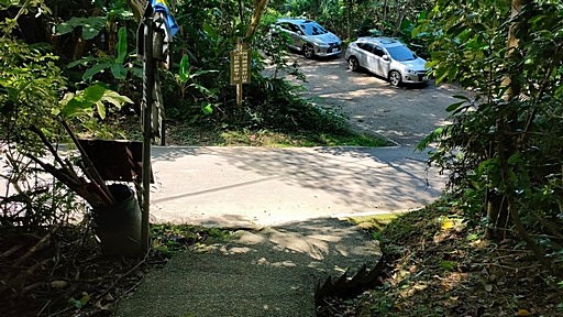 香艽古道西側入口,接上大溪宮土石車道,左往大溪宮,右往香光山寺,休息。H273m |