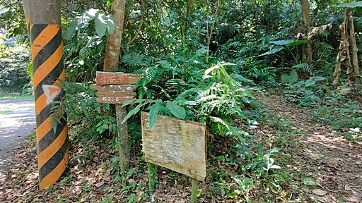 總督府步道叉路,左上往百吉林蔭步道,右上往總督府步道,直行往舊百吉隧道,取右,小段木棧道之後轉為土路步道,路況極佳。H257m |