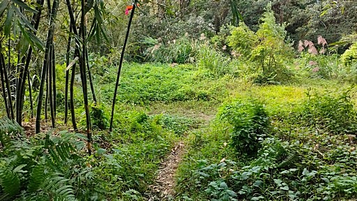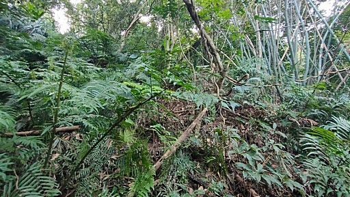 挑戰路線第二叉路,續前行。末段為竹園。H290m |