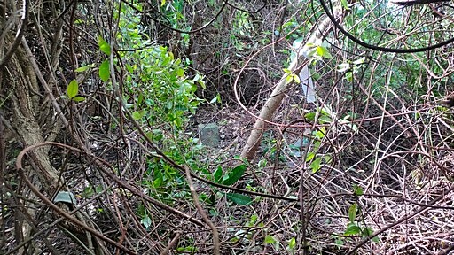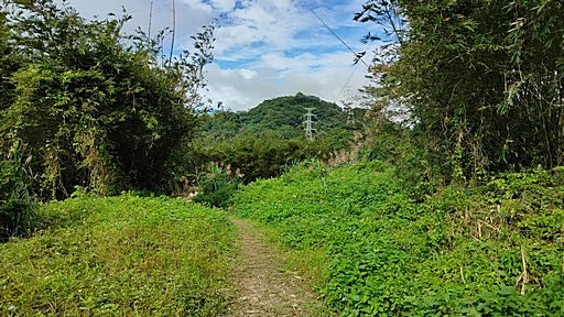小溪洲山登山口,廢棄屋舍有養生步道指標,但步道早已廢棄,山路亦完全無蹤跡。硬鑽向上幾公尺,右側有剛整理過的農地,但偏離路線,退回。左側發現一條雜草叢生的廢棄寬農路,尚不難通行。H140m |