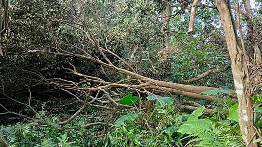 續行,取左下往慈湖,颱風剛過倒樹多,但都可繞過。 |