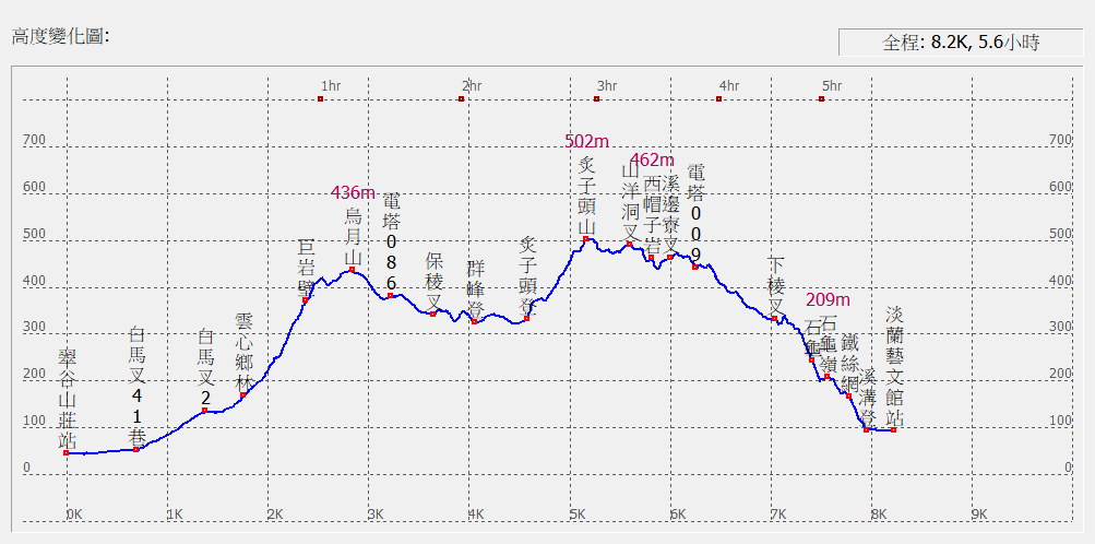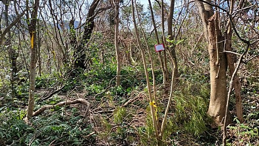 烏月山(烏月髻尾山、三貢嶺山),441m,三等三角點六八三號。樹林間無展望。續行可下往道場、楓子林山。H436m |