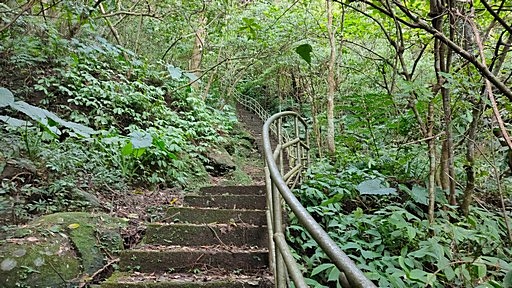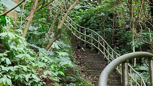 產道底水塔群,自然轉為水泥階梯步道續往上。稍後居然出現一隻藍腹鷴在前引路。H201m |