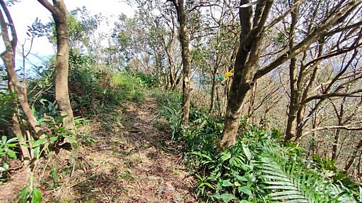 上稜叉路,左往烏月山,右往巨岩壁頂觀景台,忘了去觀景,取左。山路循稜而行,路況仍佳。H391m |