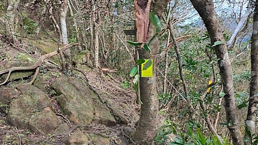 山羊洞叉路,右下山路往山羊洞登山口約45分。此處設有救援4號牌。H491m |