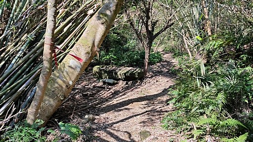 待老坑山(德高嶺),382m,三等三角點一○九五號。山頂為樹林休息區,可惜無展望。續行為山路下往杏花林B區、救千宮。H370m |
