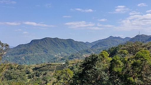 福德宮,接上次格中繼站道路,右下有寬大步道可回草湳大榕樹。續行,循次格中繼站道路往貓空尖登山口。H499m |